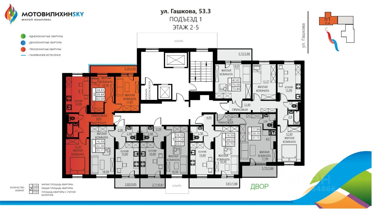 ЖК МотовилихинSKY - современный, новый микрорайон с развитой инфраструктурой: • Зеленый район, • Наземный и подземный паркинг, • Современные детские площадки для всех возрастов, • Спортивные площадки, • Собственная автономная котельная, • Дизайнерский холл, • Колясочные на каждом типовом этаже, • Более 40 планировочных решений, • Рядом современный сквер с местами отдыха и тропами для бега, • 3 крупных сетевых магазина, • стоматологический кабинет, • клиника здоровья, медицинская лаборатория, • развивающие кружки для детей, • бьюти-студии и пр., • В шаговой доступности: гимназия, школа, детский сад. • Рядом остановочный пункт с маршрутами в любой конец города. Представьте себе место, где буквально до неба можно дотронуться рукой, а облака станут частью вашей ежедневной прогулки! И это место — новый двор в ЖК МотовилихинSKY! Название двора неслучайно и отражает главную идею ЖК МотовилихинSKY: сделать проживание комфортным, приятным и возвышенным, позволяя его жителям почувствовать счастья и свободы. В центре двора расположился ''Небесный городок'' с извилистой закрытой горкой, смотровой площадкой и настоящими облаками! Покорять небесные виражи понравится детям любого возраста! ЖК МотовилихинSKY идеальное место для комфортного проживания с семьей в Мотовилихинском районе города Перми. Новые дома в микрорайоне МотовилихинSKY имеют много плюсов: 1) Сочетание проверенных технологий строительства с современными планировочными решениями и инженерными находками. В домах из современной панели слышимость гораздо ниже, чем в монолитных. А дополнительное тепло в доме достигается за счет современного утеплителя, который не имеет контакта с внешней средой, то есть не мокнет и не портится. 2) Дом оборудован скоростными лифтами и системой пандусов. Поэтому переезд будет более комфортным. 3) Дополнительный технический этаж, где идут все коммуникации. Квартира с полной отделкой от застройщика: металлическая входная дверь с облицовкой ''под дерево'', матовые натяжные потолки, качественный линолеум, светлые обои, полный набор сантехники и приборов учета, керамическая плитка на полу в санузлах с обустройством системы ''теплый пол''. Несомненно, Вам будет удобно в квартире от СПК! Записывайтесь на экскурсию и убедитесь в этом лично! УНИКАЛЬНЫЕ СПОСОБЫ ПРИОБРЕТЕНИЯ - КУПИТЬ ЛЕГКО! Рассрочка до конца строительства. Выгодная ипотека от крупнейших банков РФ. Зачёт вторичным жильём (старая квартира в счет новой!) Квартира подходит под покупку в ипотеку, с помощью материнского капитала, для всех видов жилищных сертификатов. Поможем с одобрением ипотеки на выгодных условиях от ведущих банков города Перми. Количество квартир ограничено!