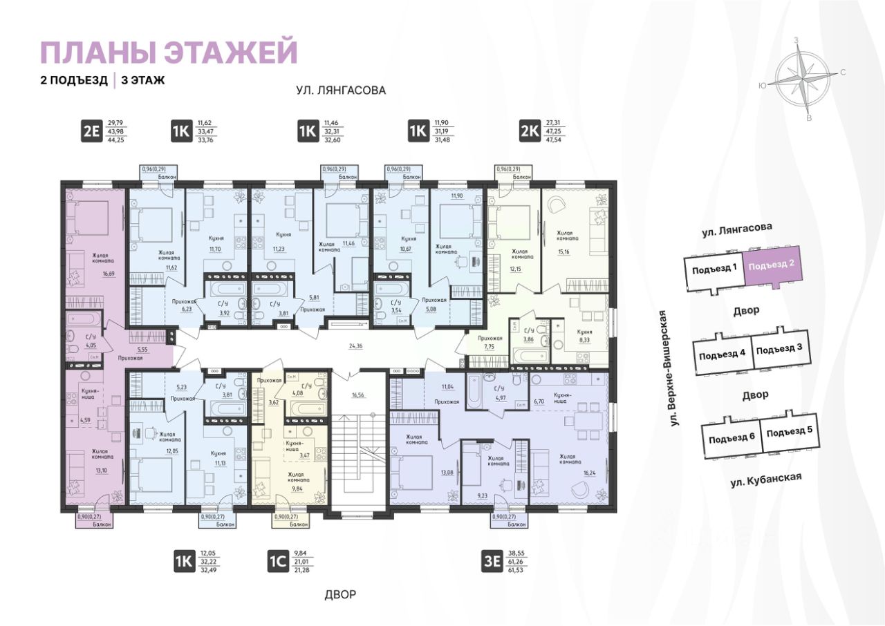 Стильные подъезды выполнены по индивидуальному дизайну. Предусмотрено место для хранения колясок, в 4 подъезде - колясочная. Подъезды оборудованы домофонами, расположенными в тёплых тамбурах.