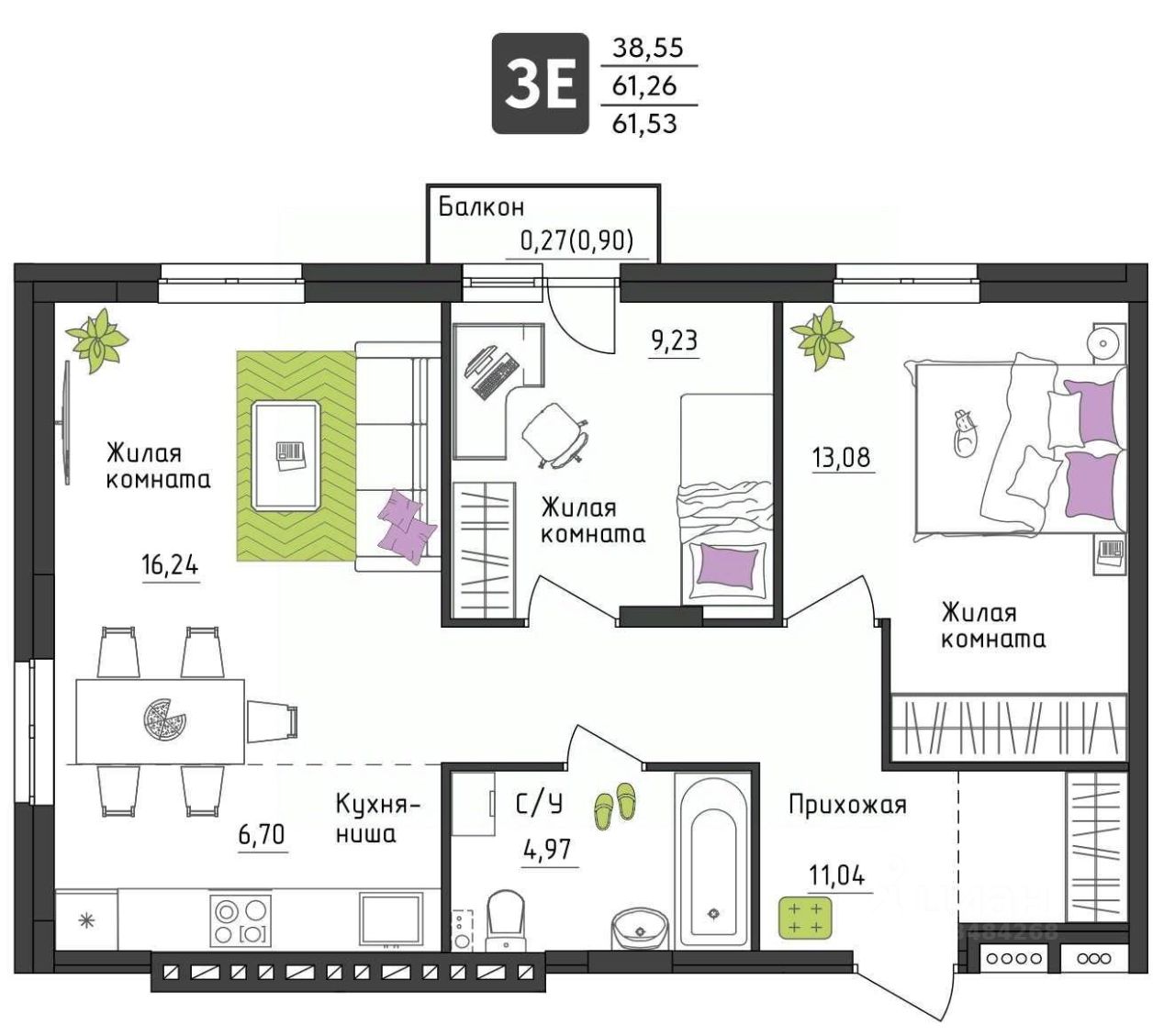 Качественная отделка ''под ключ''. В вашей квартире: •Входная металлическая дверь •Ламинат 32 класса с плинтусом •Виниловые обои •Межкомнатные двери из эко-шпона •Белый матовый натяжной потолок •Электротехническая разводка с установленной электрофурнитурой •Телекоммуникационная разводка до квартиры (ТВ, интернет) В санузлах: •Керамическая плитка на полу •Керамическая плитка на стенах в мокрой зоне •Матовый натяжной потолок •Сантехника: ванна, унитаз, раковина, смесители. Полотенцесушитель.