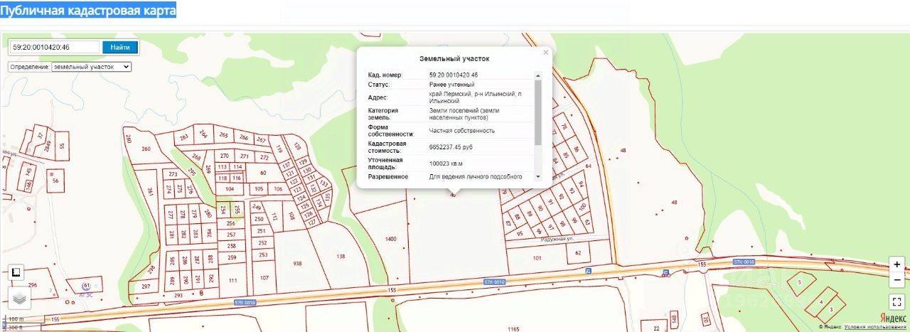 Кадастровый номер 59:20:0010420:46 . Участок расположен около дороги Пермь - Ильинский, на въезде в пос. Ильинский.