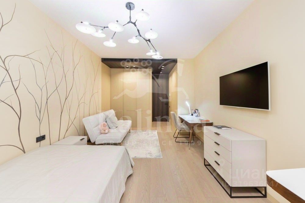 Просторная кухня-гостиная с современной техникой и шикарными видами в сторону центра Москвы, мастер-блок и детская комната, 3 санузла и постирочная. Из спален открывается красивый вид на МГУ. Квартира полностью меблирована и готова к проживанию.
