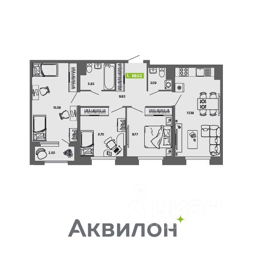 Отделка квартиры White box (готова к ремонту). Сдача 4 кв. 2025 г. ЖИЛОЙ КОМПЛЕКС ''Аквилон CITY Towers-2'': Проект разработан международным архитектурным бюро MLA+ (Нидерланды). ЖК класса ''комфорт-плюс''. Концепция Termo-S: монолитно-кирпичная технология, внешние стены 460 мм. Экономия на коммунальных платежах до 40%: автоматизированный тепловой пункт с датчиками температуры, коллекторная бесстояковая разводка системы отопления с поквартирным учетом тепла, двухтарифные электросчетчики, современные приборы отопления уменьшенной высоты со встроенными терморегуляторами. Увеличенный слой утеплителя, кровли и цоколя 180 мм, класс энергосбережения А+ (очень высокий). Система inHOME: контроль за квартирой из мобильного приложения, ''умные'' счетчики, датчики защиты от пожара и протечек, IP-домофония с интерактивным многофункциональным экраном в каждой квартире, единый ключ smart key, открывающий двери в необходимые помещения. Видеонаблюдение, консьерж-сервис. Grand Lobby, Дизайнерская отделка холлов, светопрозрачные входные группы, бесшумные лифты. Подземный паркинг и сити-боксы на нулевом этаже. Собственный детский сад на 75 мест.