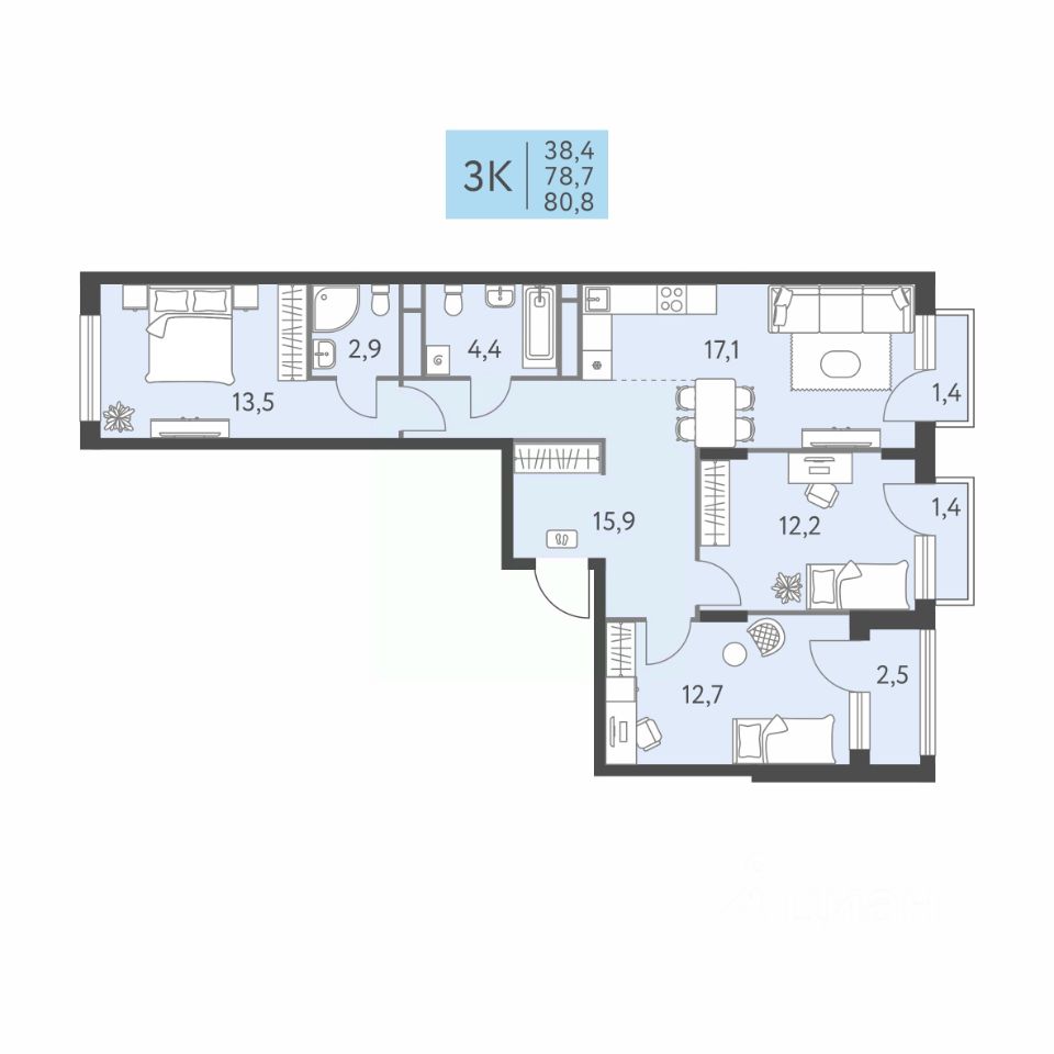 продам 3-к, Левченко, 815 940 022 ₽