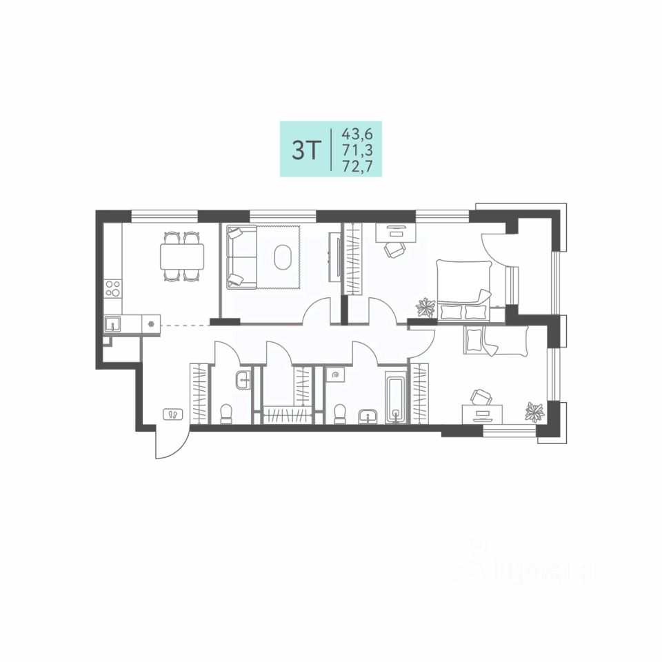 продам 3-к, Левченко, 813 219 296 ₽