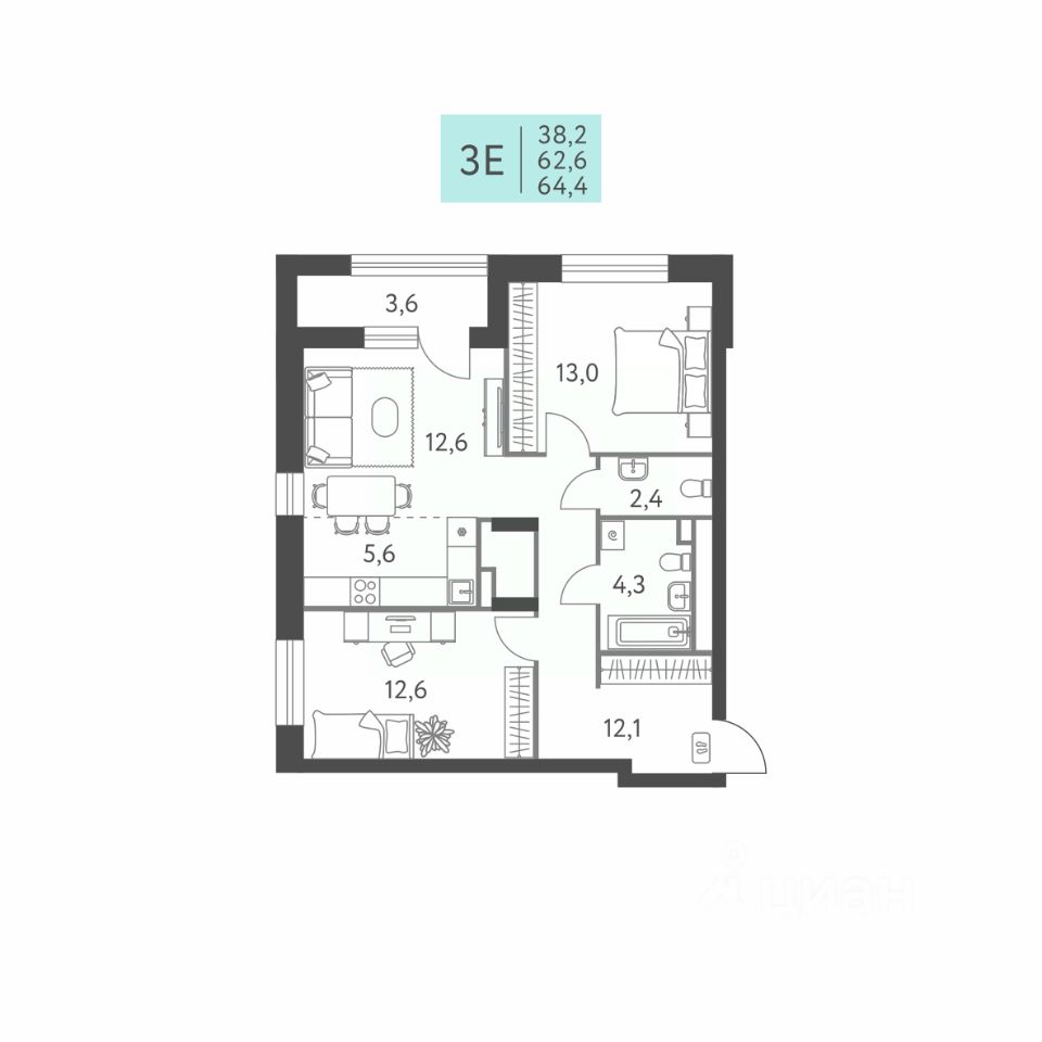 продам 3-к, Левченко, 812 025 457 ₽