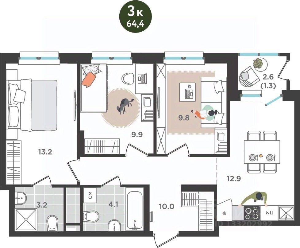 продам 3-к, Куфонина, 110 591 797 ₽