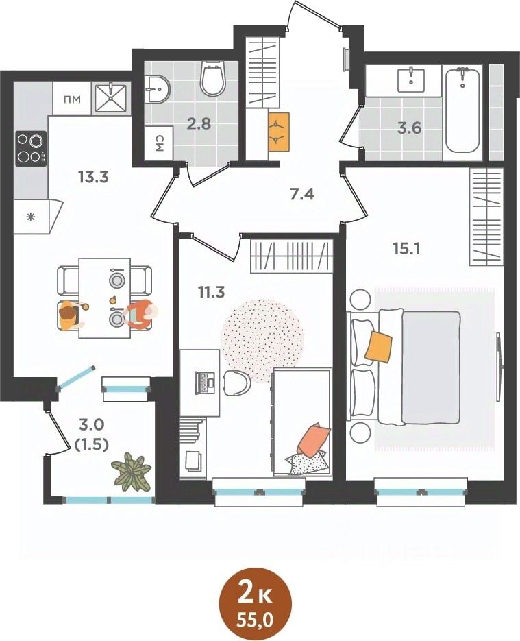 продам 2-к, Куфонина, 19 579 158 ₽