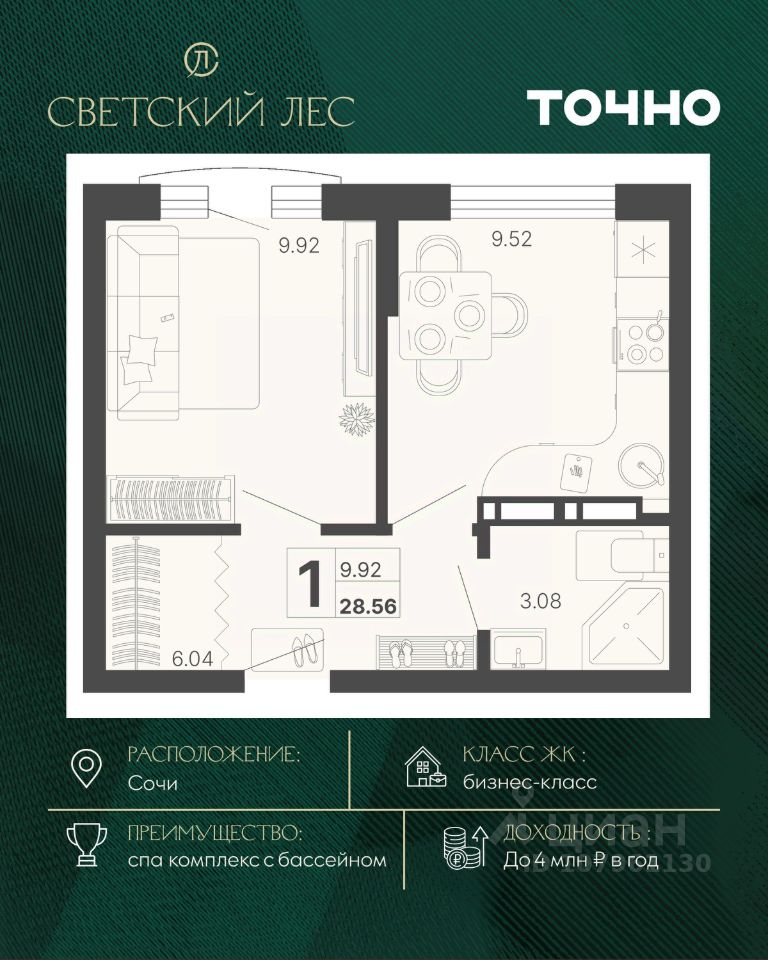 продам 1-к, Сочи14 422 800 ₽