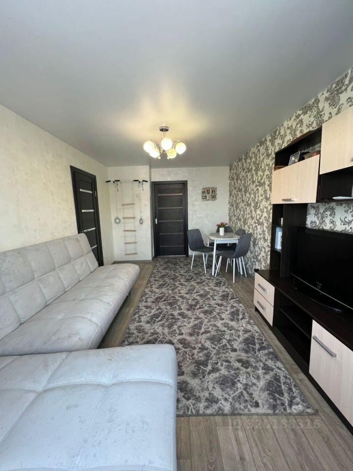 во всех комнатах натяжные потолки, на полу линолеум, в ванной плитка, окна пластиковые, балкон новый застеклен, в квартире остаётся встроенная кухня, кондиционер. В доме расположены пункты выдачи заказов WB, ozon, парикмахерская, аптека.