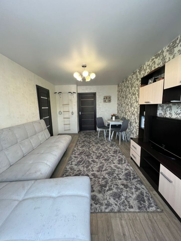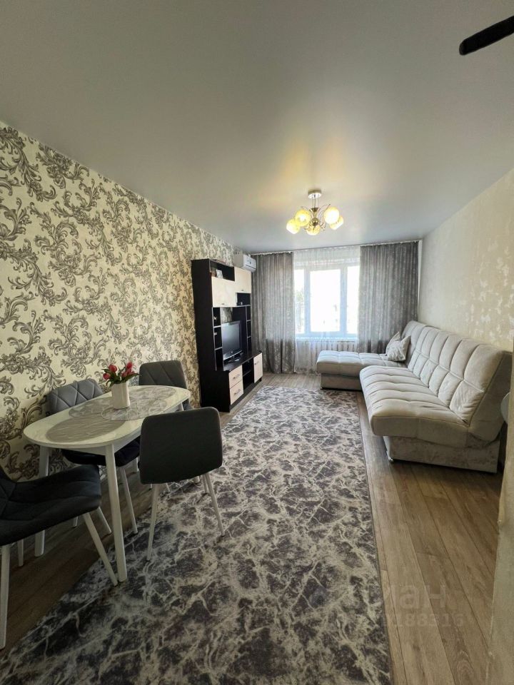 во всех комнатах натяжные потолки, на полу линолеум, в ванной плитка, окна пластиковые, балкон новый застеклен, в квартире остаётся встроенная кухня, кондиционер. В доме расположены пункты выдачи заказов WB, ozon, парикмахерская, аптека.