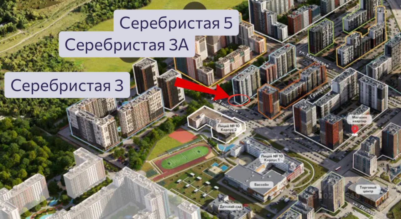 Прямо напротив Лицея 10 (после постройки второй очереди будет входить в тройку крупнейших школ России)