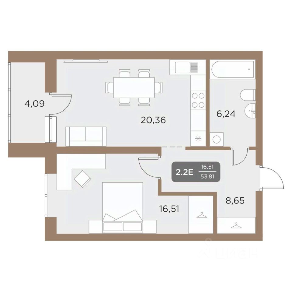 Общая площадь53,81 м2