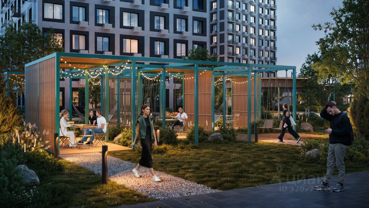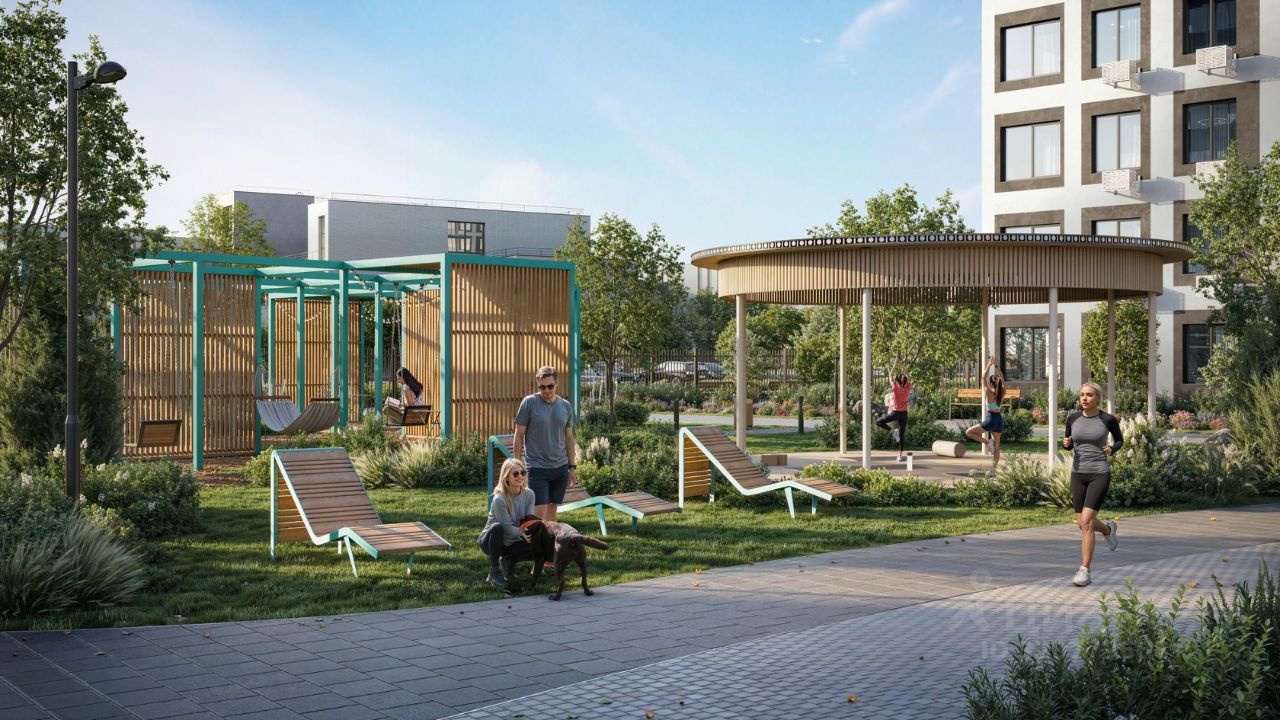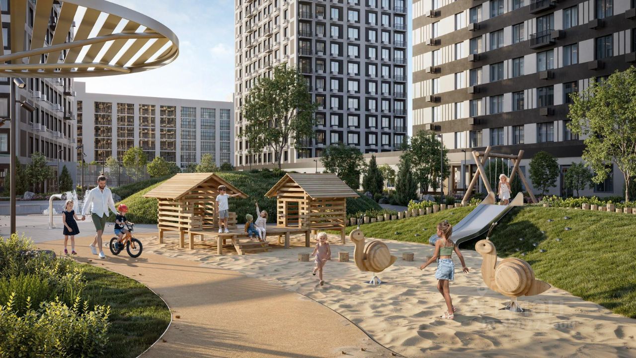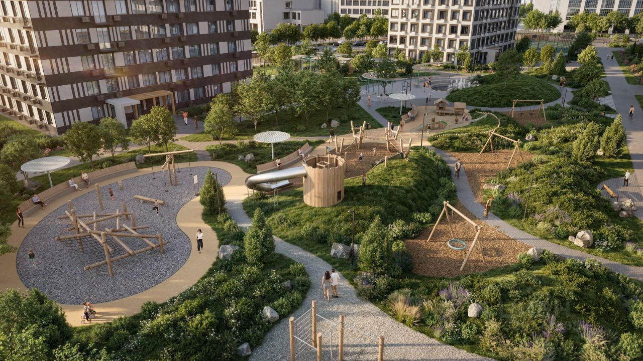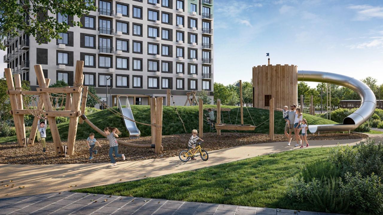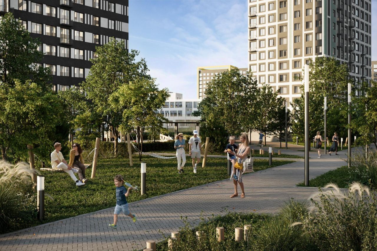 Благоустроенные дворы. Наполнение двора детально продумано, с учетом потребностей каждого жителя. Детские площадки для разных возрастов, зоны отдыха, зеленые аллеи и пешеходные дорожки. В центре двора предусмотрен амфитеатр для общих встреч жителей и больших мероприятий. Собственная сервисная компания 24/7 поддерживает чистоту территории жилого квартала.