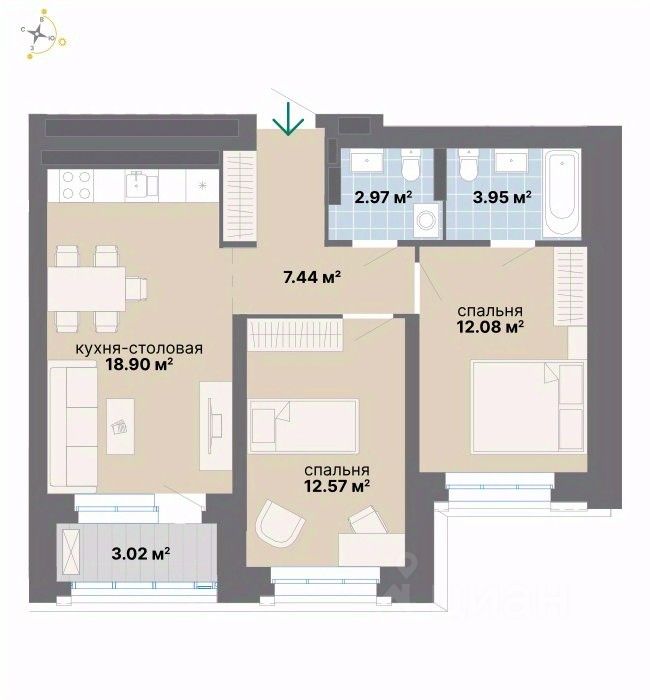 Квартира 64 в подъезде 1.