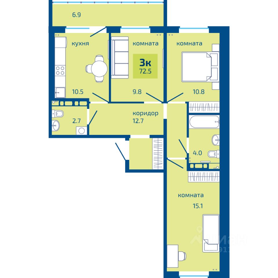 продам 3-к, Целинная, 1 корп. 19 085 000 ₽