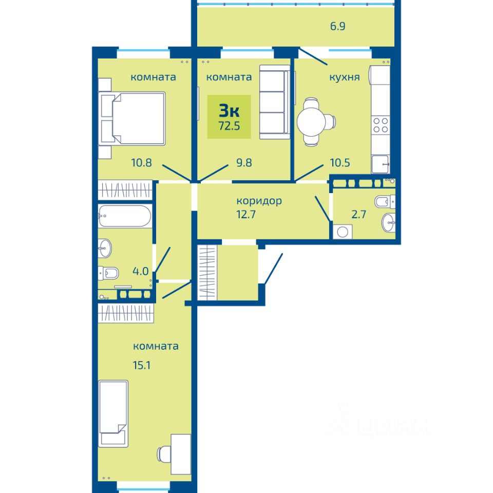 продам 3-к, Целинная, 1 корп. 18 261 000 ₽
