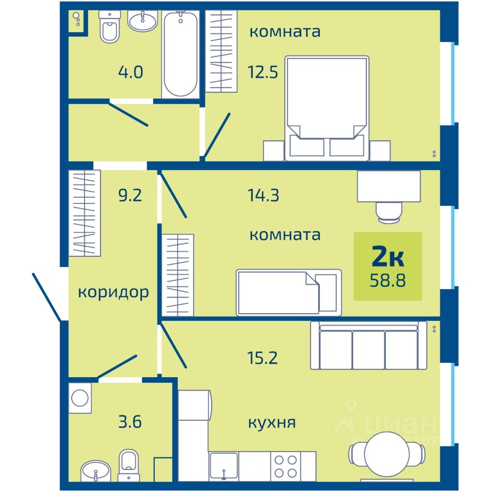 продам 2-к, Целинная, 59 корп. 26 612 000 ₽