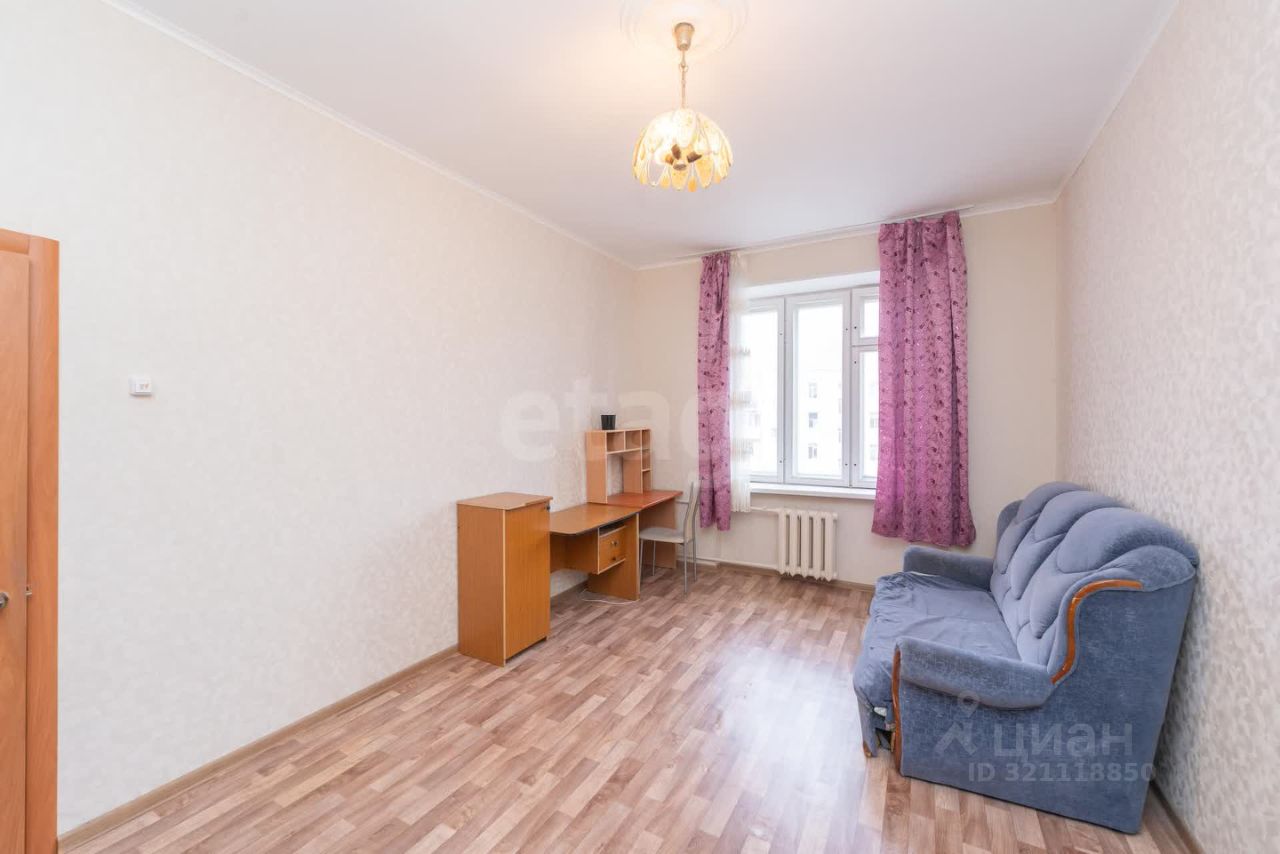 Планировка квартиры функциональна и продумана. Просторная кухня правильной квадратной формы площадью 8,7 кв.м. является удачным решением для этой серии домов. Светлая гостиная 19 кв.м. совмещена с застекленным балконом, который служит прекрасной смотровой площадкой с панорамными видами на город. Изоляция комнат обеспечивает комфортное проживание: большая спальня 19,1 кв.м. и уютная комната 14,2 кв.м., идеально подходящая для кабинета или детской, с уникальным видом на здание цирка. Санузел раздельный.