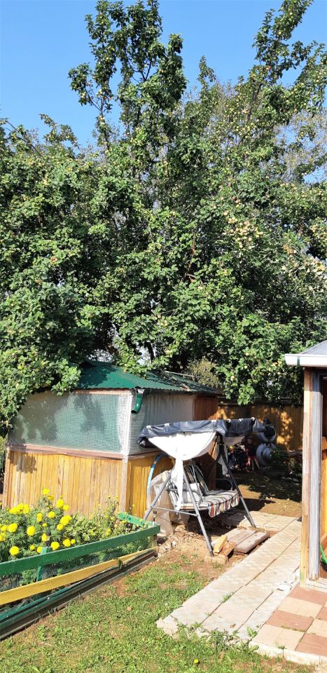 Построены баня с комнатой отдыха, беседка. Есть теплица. Территория огорожена забором.