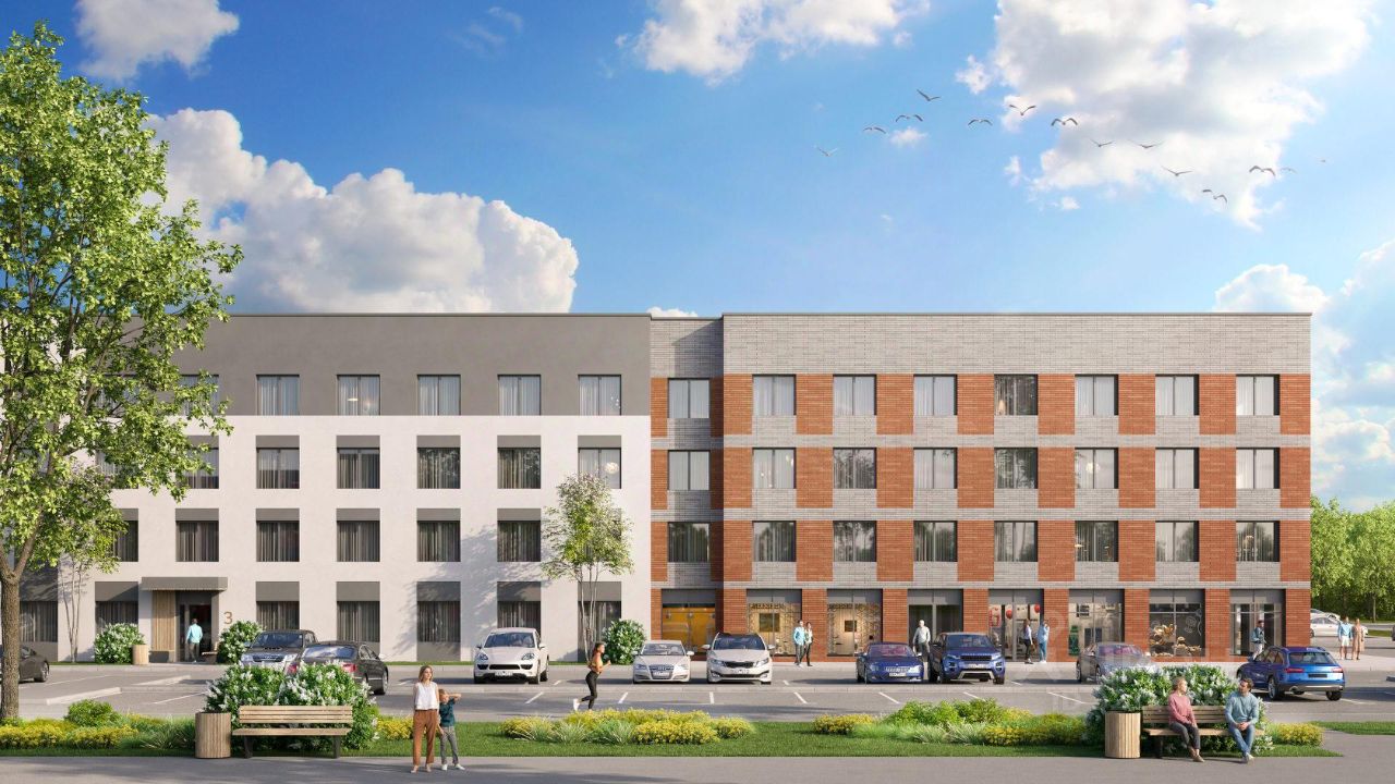 Вместительная квартира для большой семьи с функциональной кухней-гостиной, двумя санузлами и постирочной. В прихожей есть место под шкаф.