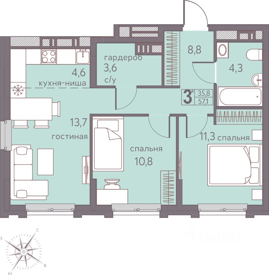 Продаётся студия в строящемся доме (Серебристая, 5), срок сдачи: I-кв. 2026, общей площадью 57.1 кв.м., на 14 этаже. Теплые кварталы ''Погода'' — это новый грандиозный проект от создателя Спортивного микрорайона ''Ива'', федерального застройщика ''Девелопмент-Юг'' .