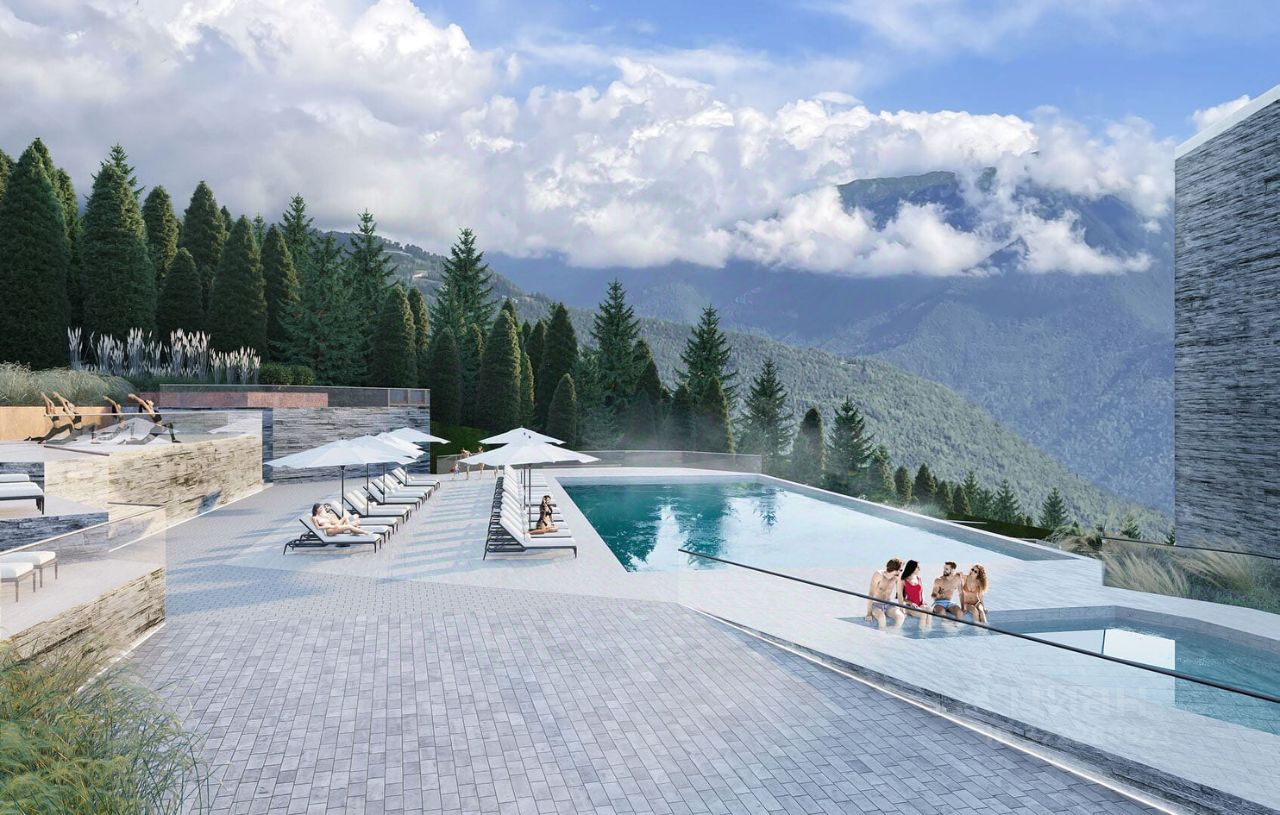 Превосходная отельная инфраструктура : спа-комплекс с внутренним бассейном, фитнес-зал, ски-рум, магазины, рестораны, открытый 25-метровый плавательный бассейн.
