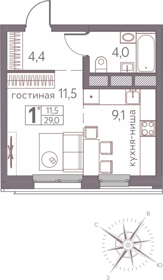 продам 1-к, Серебристая, 35 541 900 ₽