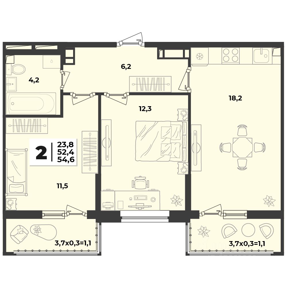 Общая площадь54,6 м2