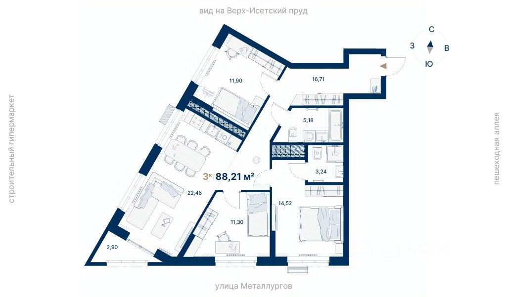 продам 3-к, Металлургов, 70 лит. д13 303 258 ₽