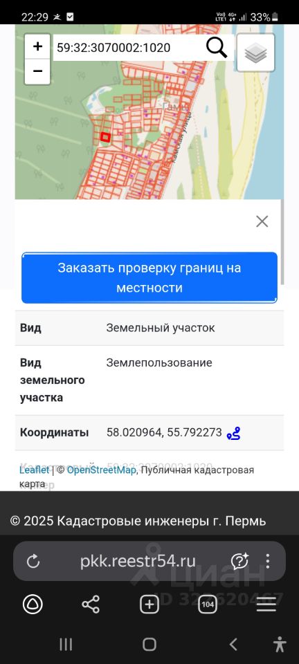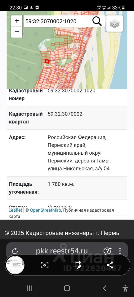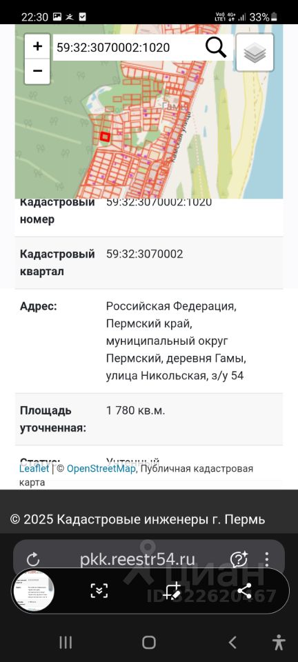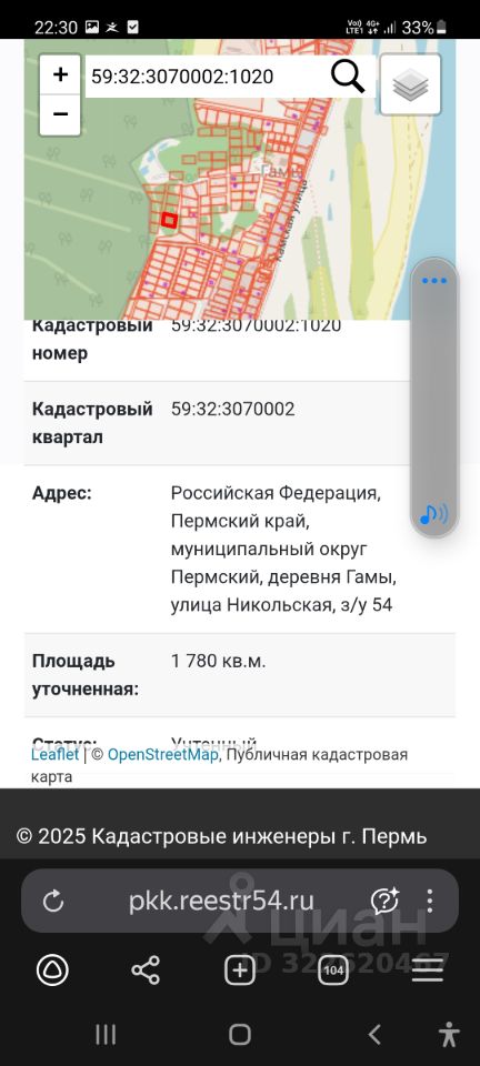Участок практически в центре деревни, подьезд с двух сторон. 59: 32:3070002:1020.