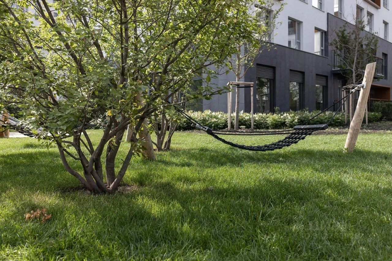Камерные дворы квартала закрыты от машин. По нашим стандартам 70% их территории покрывает зелень. Деревья, кустарники и травы подобраны таким образом, чтобы в каждый сезон двор оставался красивым и имел свой цвет. Каждый двор разделён на зоны. В одной расположены детские площадки, в другой — места для спорта и тихого отдыха взрослых.