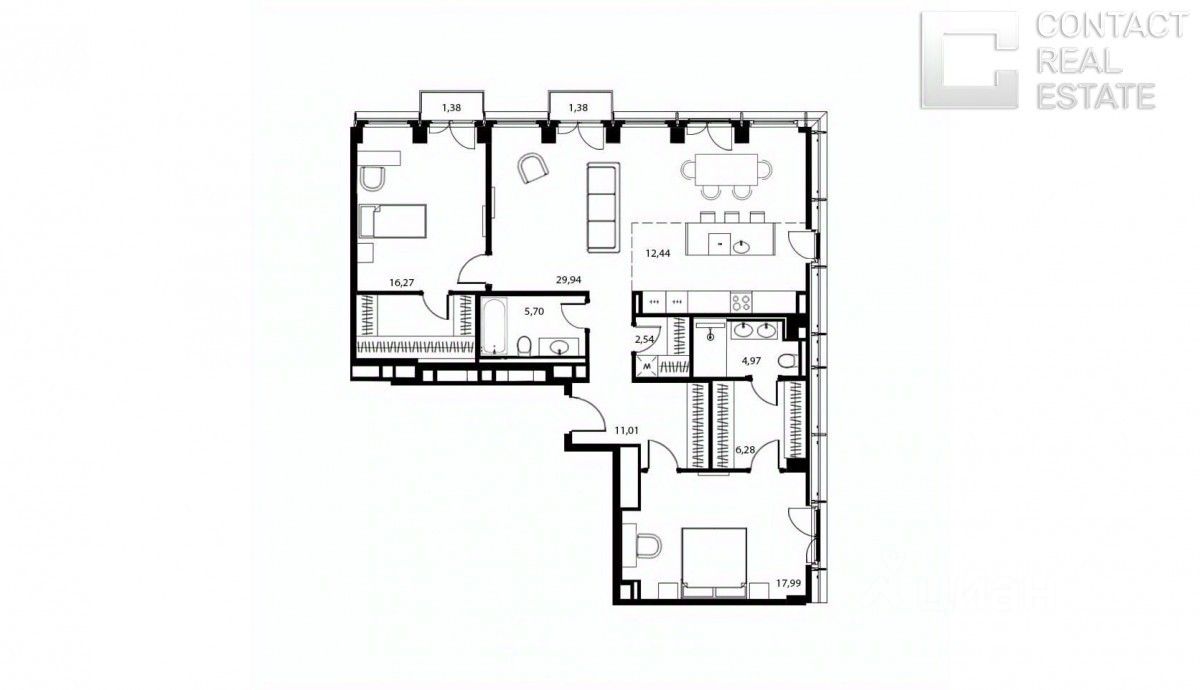 Вашему вниманию предлагается видовая квартира общей площадью 115 м² с двумя спальнями в премиальном комплексе Lucky. Функциональная планировка: кухня-гостиная, мастер-спальня с гардеробной и ванной комнатой, вторая спальня c гардеробной, гостевой санузел, постирочная, просторный холл с нишей для хранения. Угловая квартира, много окон, благодаря чему всегда наполнена солнечным светом, предлагается с премиальной отделкой от застройщика в стиле Grey. Дизайн интерьера от итальянской студии Molteni Group. Установлена кухня и ванная итальянского бренда Dada. На полу деревянная паркетная доска с системой ''тёплый пол''. Санузлы облицованы керамогранитом и бетонной плиткой ''Терраццо''. Из окон открывается панормама на город и во внутреннюю благоустроенную территорию двора. Качество и комфорт жизни владельцев квартир обеспечивает целый комплекс инженерных систем, включающих технологии очистки воздуха и воды. Оборудована система ''Умный дом'', которая позволяет устанавливать индивидуальные параметры температурного режима, влажности и других удобств. Для решения бытовых вопросов жителей работает Служба комфорта на ресепшн. Жилой комплекс расположен на территории общей площадью 4,5 га и имеет хорошо развитую инфраструктуру: подземный паркинг, рестораны, кафе, спортивный центр, фитнес-маркет, образовательный центр, детский сад Cambridge. В непосредственной близости расположены Краснопресненский парк и парк Красногвардейские пруды. [Лот #24279]