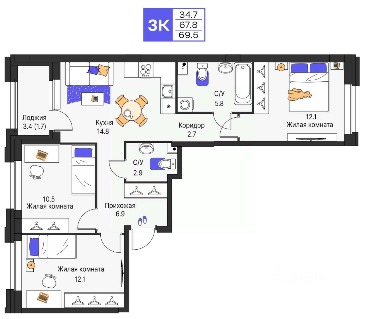 В объявление указана цена за квартиру с черновой отделкой ________________ *Застройщик ООО СЗ ''СТМ''. Проектная декларация на сайте наш.дом.рф. Не является публичной офертой. Окраска и архитектура модели здания, а также придомовая территория может отличаться от фактической.