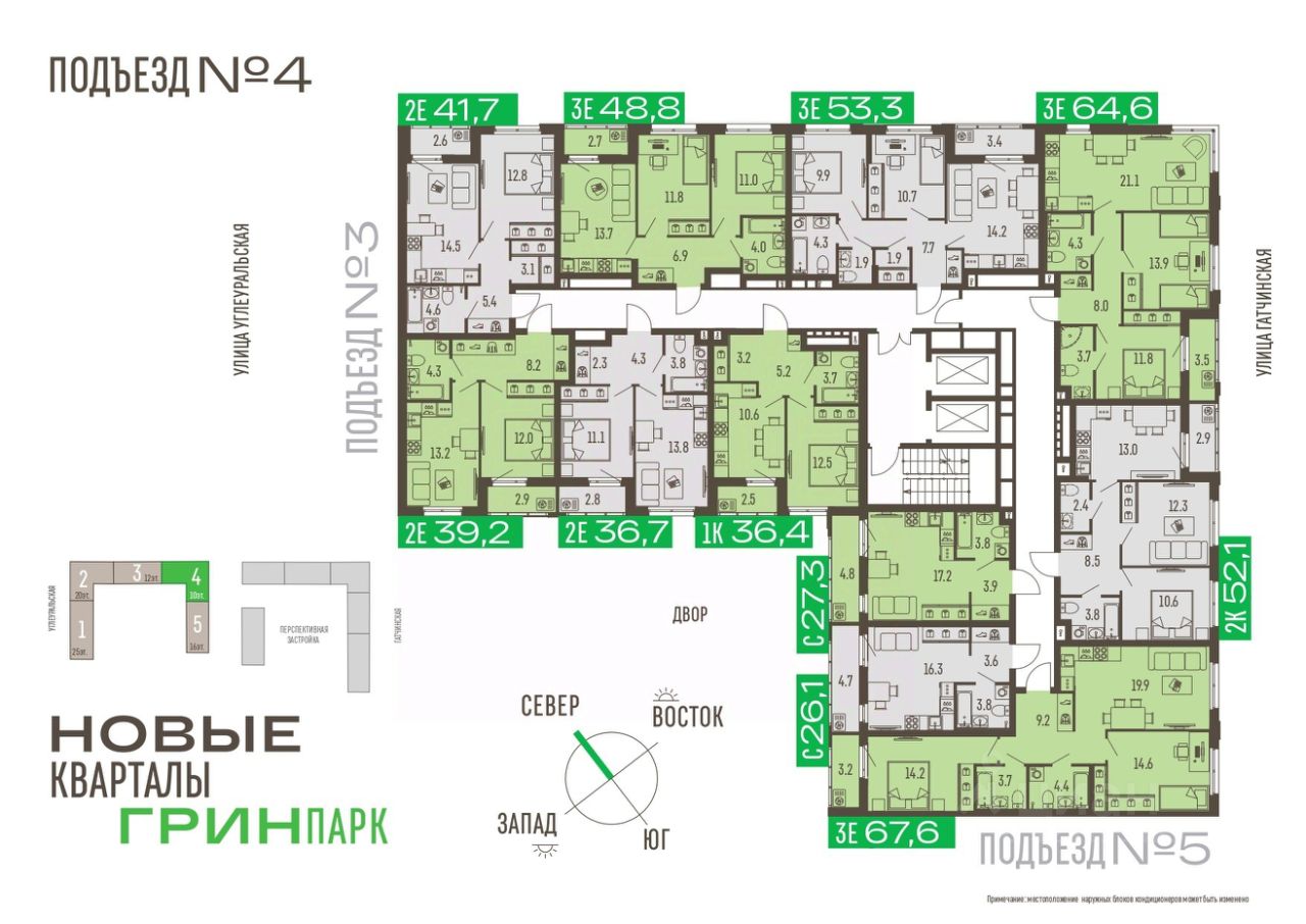 Грин Парк — это кварталы класса комфорт плюс с видами на парк Балатово, расположенный по адресу ул.Подлесная.55а - новая школа с бассейном в 300м от комплекса - приватный сквер у дома - коммерческая инфраструктура - дизайнерские холлы - видовые квартиры - подземный паркинг и кладовые