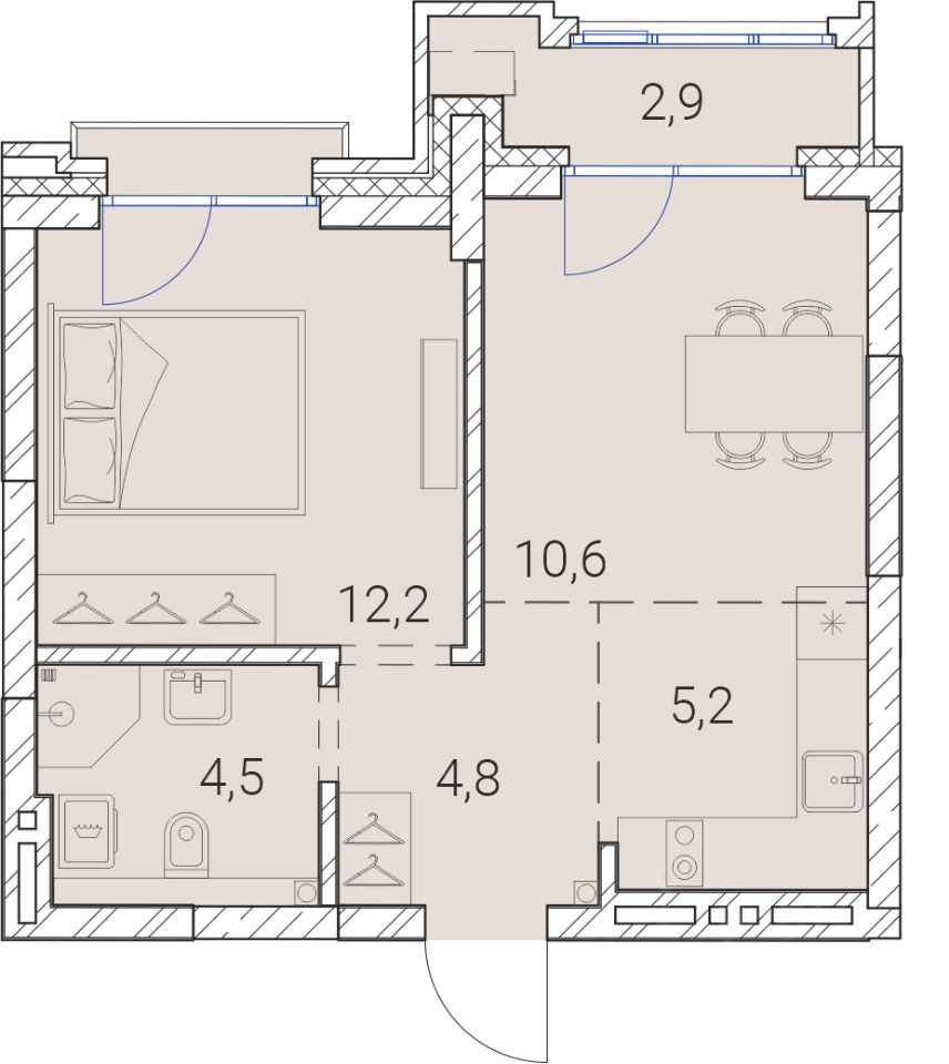 Жилая площадь12,2 м2