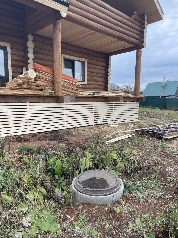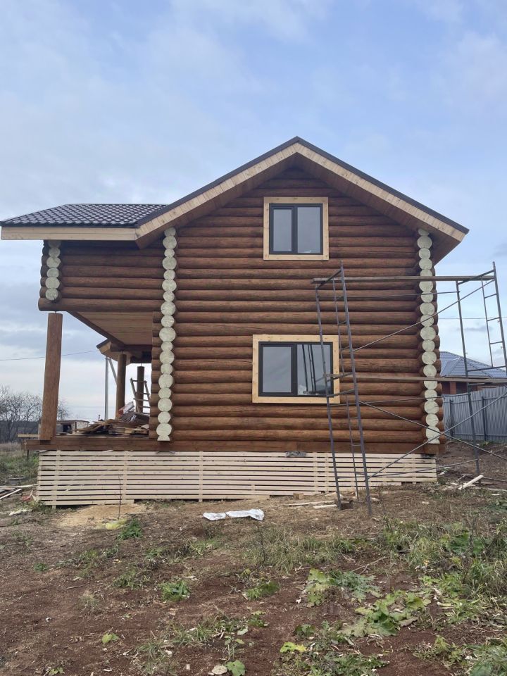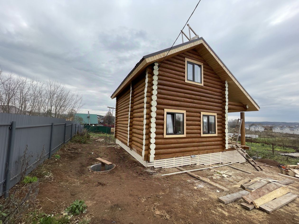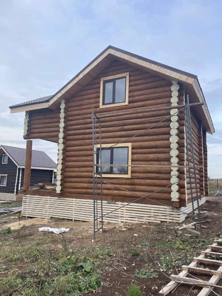 Арт. 123249423 Семейная ипотека. Продается красивый, новый, жилой дом. Площадь по документам 116м2. Дом из бревна, диаметр до 30 см. Мансардный этаж с большой лоджией и большой комнатой с окнами, которую можно разделить на две. Первый этаж - большая комната с окнами, санузел, прихожая. Высота потолков 2,9 м. Окна стеклопакеты. Полы и перекрытия утеплены. Входная дверь утепленная, с терморазрывом. Также есть большая терраса. Кровля - металлочерепица, с утепленными перекрытиями. Коммуникации - вода (скважина), канализация, электричество заведено в дом, отопление - электрокотел, батареи по всем помещениям. Фундамент винтовые сваи. Фасад дома и внутренние стены шлифованные и пропитаны защитным покрытием. Земельный участок ИЖС, правильной формы, ровный.