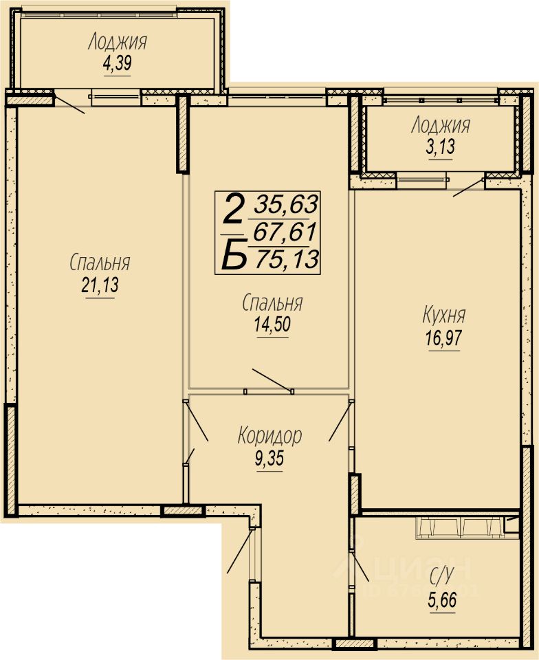 Общая площадь75,3 м2