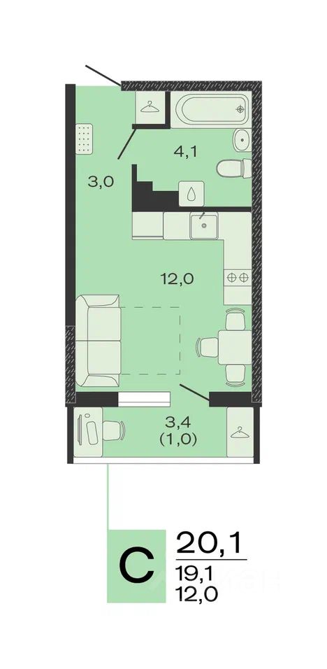 Общая площадь20,1 м2
