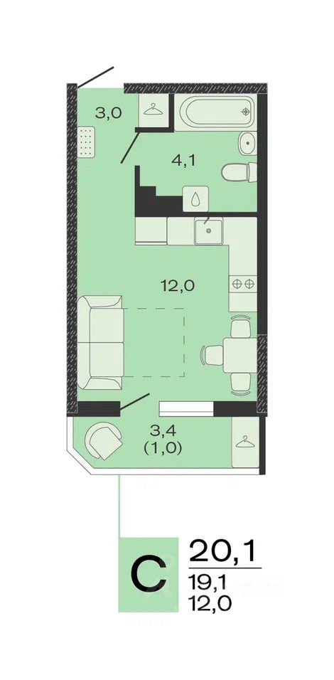 Общая площадь20,1 м2