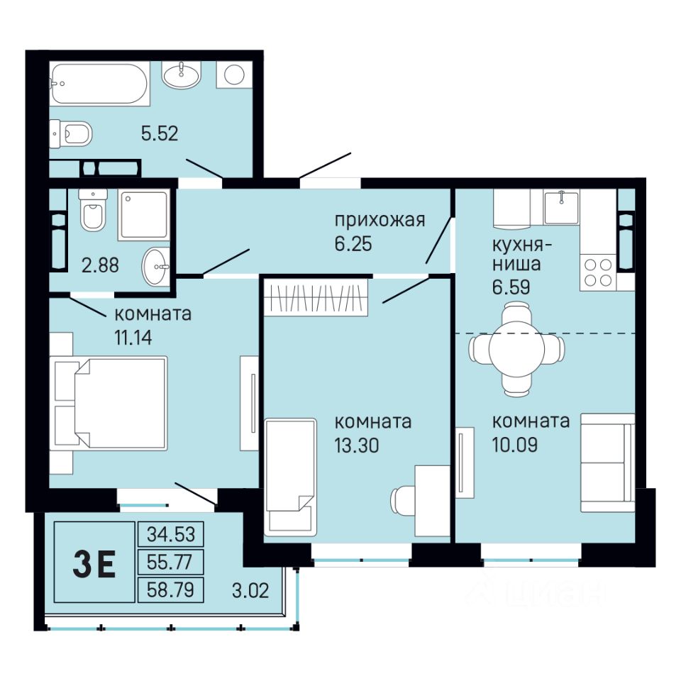 продам 3-к, Танцорова, 96 корп. 18 096 000 ₽