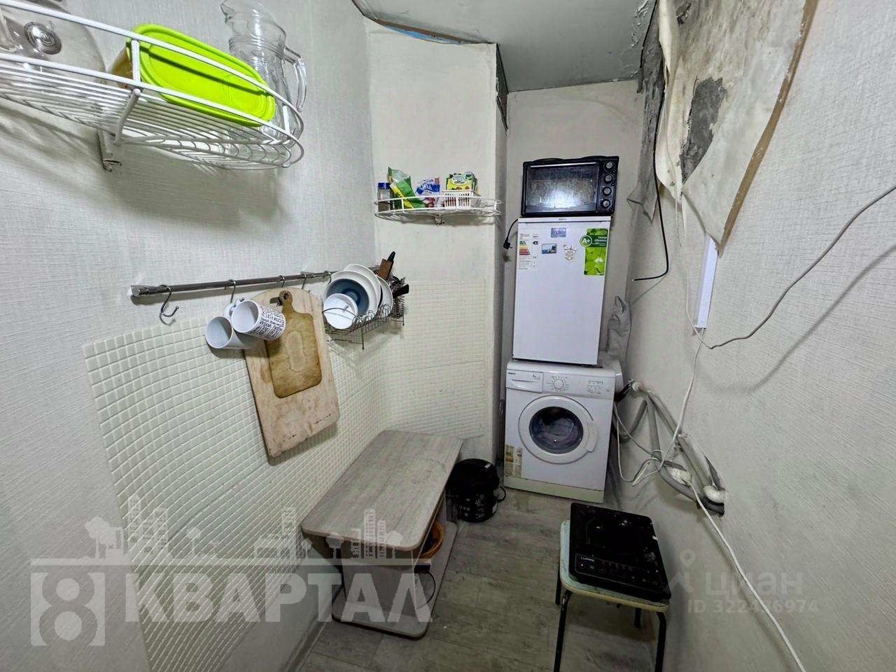 Основные характеристики: Общая площадь квартиры составляет 11,3 квадратных метров. Напротив комнаты есть своё помещение с холодильником, стиральной машиной, столом и стулом - 3 кв.м. Можно сделать личную душевую комнату. Есть общая кухня.