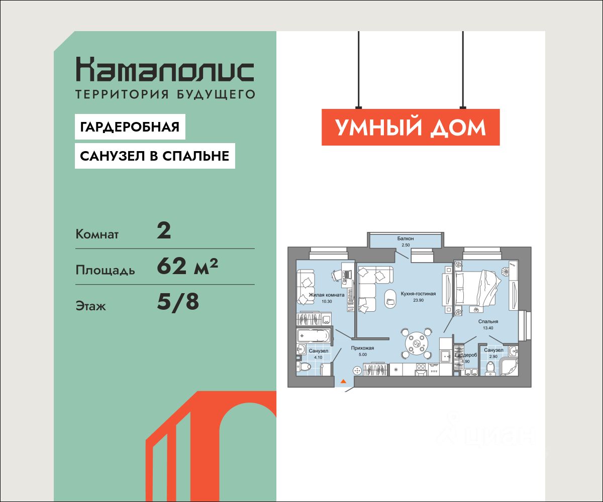 В новом жилом комплексе комфорт+ класса ''Камаполис'', расположенном на берегу реки Камы, продается 2-комнатная квартира площадью 62.00 кв. м. с предчистовой отделкой. Квартира находится в 3 доме. Девелопер проекта - ''Железно''.