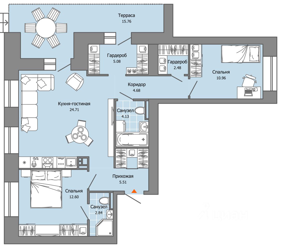 Особенность планировки - собственная терраса, ощутите преимущества загородного отдыха и полного единения с окружающей Вас красотой с видом на гладь воды Камы.
