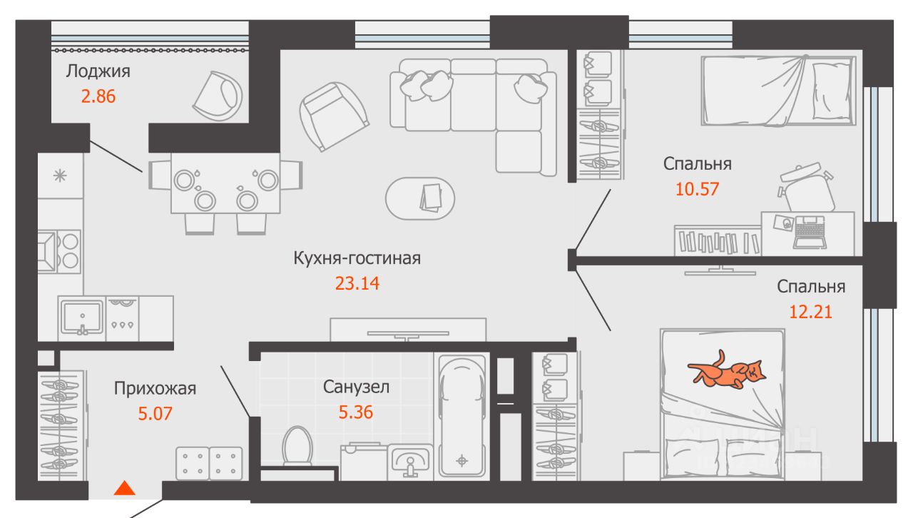 В новом жилом комплексе комфорт+ класса ''Камаполис'', расположенном на берегу реки Камы, продается 2-комнатная квартира площадью 58.00 кв. м. Квартира находится в 5 (1 этап) доме. Девелопер проекта - ''Железно''.