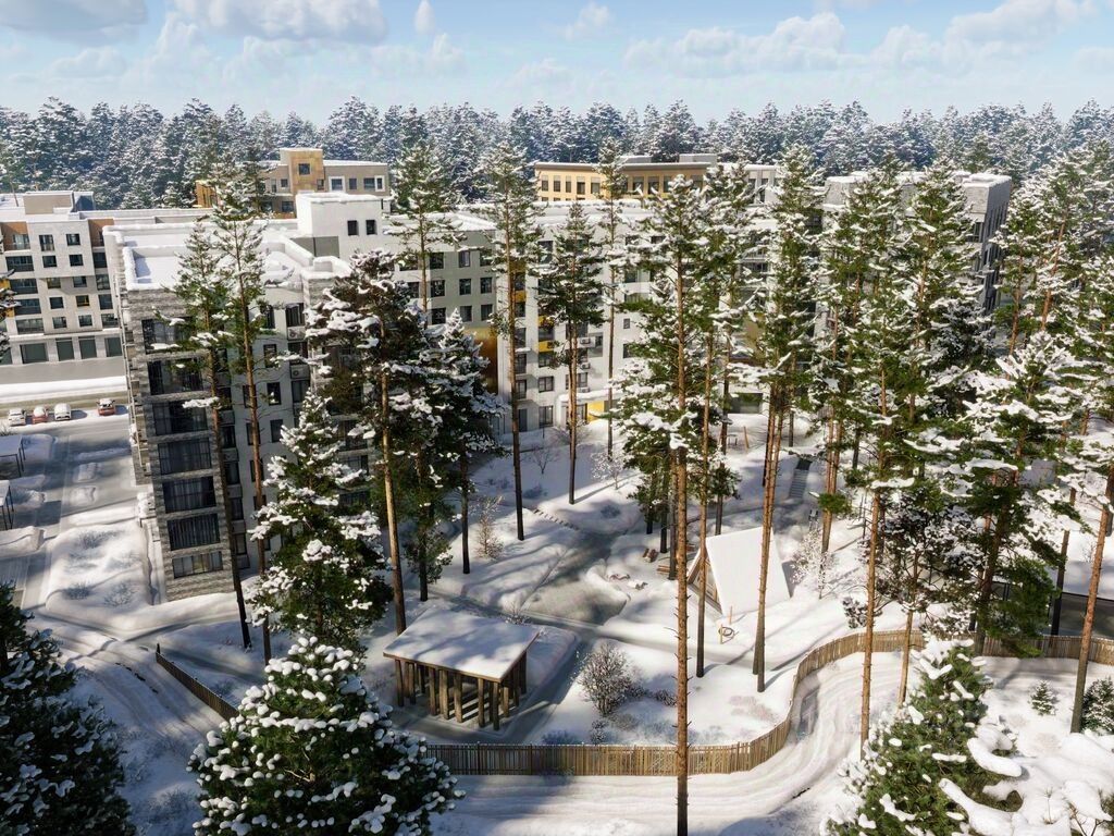 Живой квартал у леса Лес - главный герой квартала. Дома находятся в окружении соснового бора, а их этажность - до 8 этажей - не превышает крон сосен. В новом жилом комплексе большое внимание уделено заботе о сохранении деревьев и реализации специальных программ по высадке новых, чтобы жители наслаждались прекрасной растительностью каждый день.