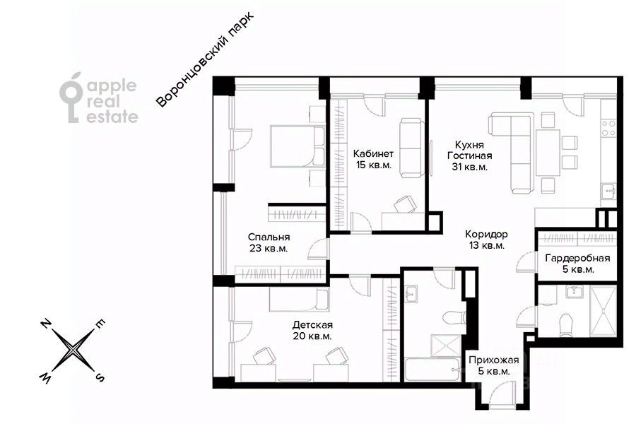 Квартира с идеальным ремонтом. 3 спальни и кухня-гостиная любовь к прекрасному в каждой детали. Разделены общее и жилые пространства. В общей зоне кухня-гостиная, гардеробная и гостевой санузел. В приватной зоне 3 изолированных спальни. В мастер-блоке своя гардеробная, угловое остекление. Потолки 3, 1 м. Мебель Dantone Home, Cosmorelax, эмаль и шпон дуба. Вазы и прочий декор от европейских дизайнеров. Техника Kuppersberg. Паркет Finex. Испанский керамогранит Living. Скрытые двери 2,40 м. Электрокарнизы. Тканевые натяжные потолки. Окна в пол, французские балконы, виды на Юго-З ападный округ столицы, Воронцовский парк, усадьбу Воронцово. Канальное кондиционирование. ЖК премиум-класса AFI Park новый, с подземным паркингом, охраной, уютными лобби, закрытым двором-садом, спортивными и детскими площадками, игровой комнатой. Рядом с Воронцовским парком. По качеству строительства и локации рядом с парком и метро интереснее других новостроек района. В шаговой доступности одна из топовых школ города 1514, в том числе ради которой переезжают в этот район. Предложение для тех, кто хочет заехать в квартиру с идеальным ремонтом и жить в экологически чистом районе