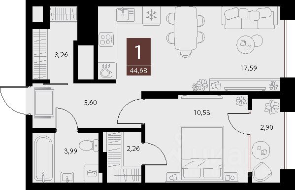 Общая площадь44,68 м2