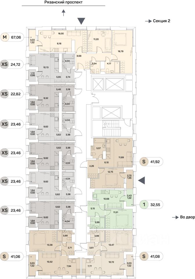 Общая площадь41,06 м2