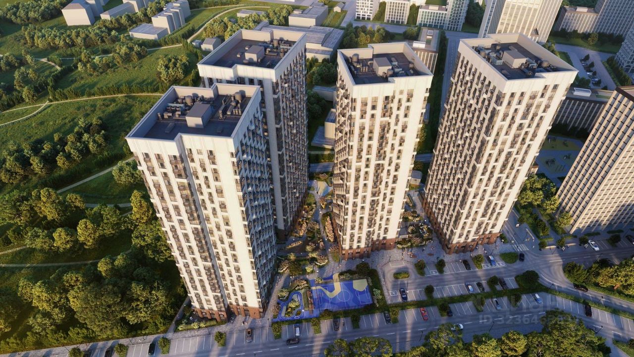 Квартал состоит из четырех 27-этажных домов. В домах — уютные студии, однокомнатные, двухкомнатные, семейные трехкомнатные квартиры. А для ценителей редких форматов квартиры с террасами. Парадный вестибюль с камином и кафе, двор с лаунж-зонами, фонтаном, сенсорным садом, детскими и спортивными площадками внутри.