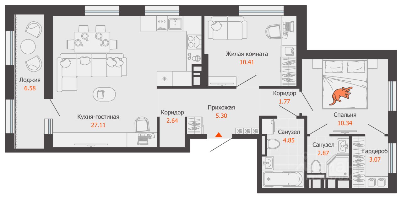 В новом жилом комплексе комфорт+ класса ''Камаполис'', расположенном на берегу реки Камы, продается 2-комнатная квартира площадью 72.00 кв. м. Квартира находится в 5 (1 этап) доме. Девелопер проекта - ''Железно''.